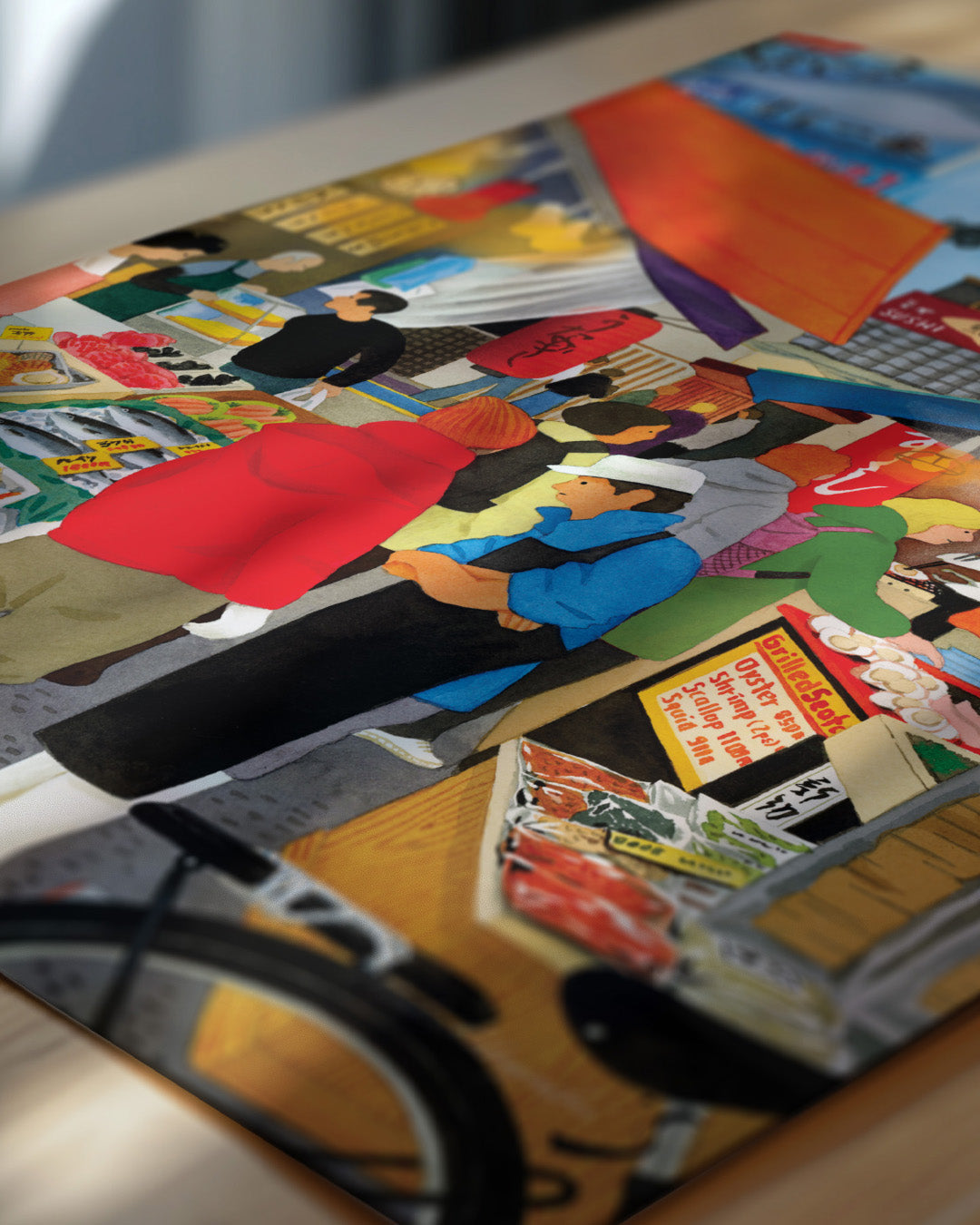 Pleasant Shimo produces contemporary art that captures how a neighbourhood feels—not just how it looks. We’ve partnered with local artists in Vancouver and Tokyo to translate iconic neighbourhoods into compelling visual narratives. Each piece begins with field research and is shaped through a collaborative design-thinking process.